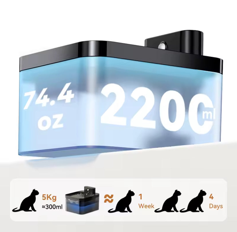 - 2.2L de capacidad: Suficiente para una semana de agua potable para tu gato.