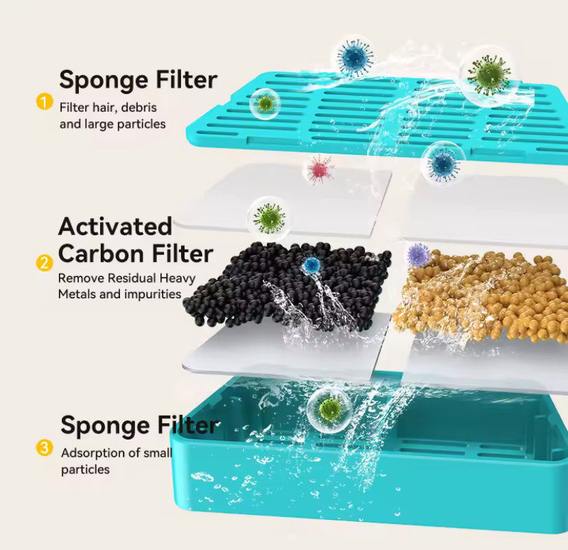 - Segundo filtro de esponja: Atrapa partículas pequeñas para una purificación completa.