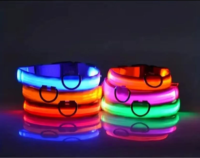 Este collar luminoso es ideal para paseos nocturnos, manteniendo a tu perro visible y protegido en todo momento.