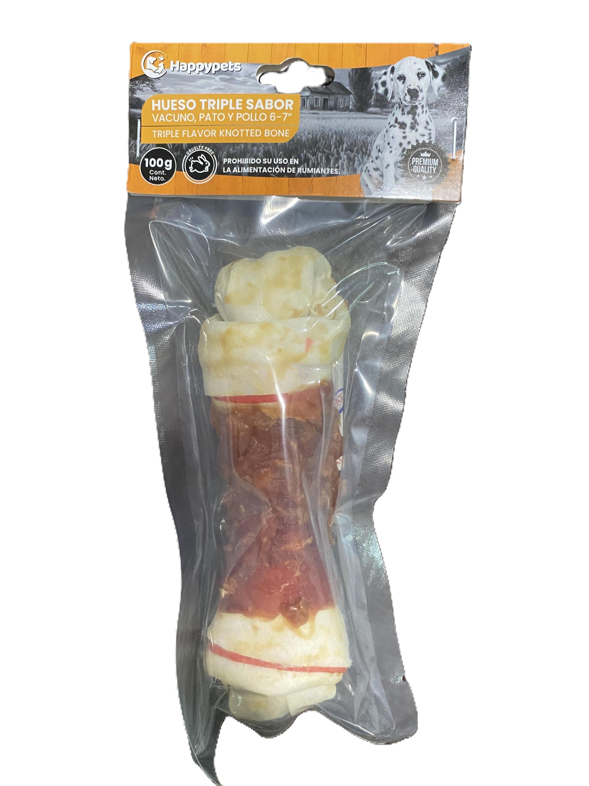 🦴 Hueso Triple Sabor Vacuno, Pato y Pollo 6–7”