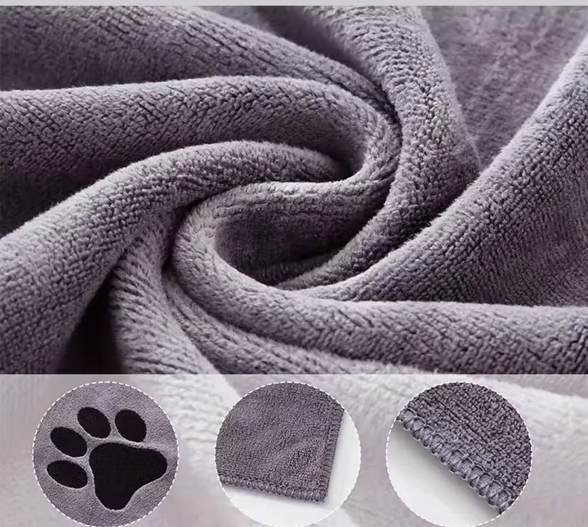 - 🐾 Súper absorbente y suave al tacto: Fabricada con microfibra de alta calidad, esta toalla seca rápida y eficientemente el pelaje de tu mascota sin causar molestias ni irritaciones en la piel.